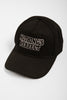 Capello in cotone nero con ricamo NOTHING'S PERFECT bianco e nero a contrasto.