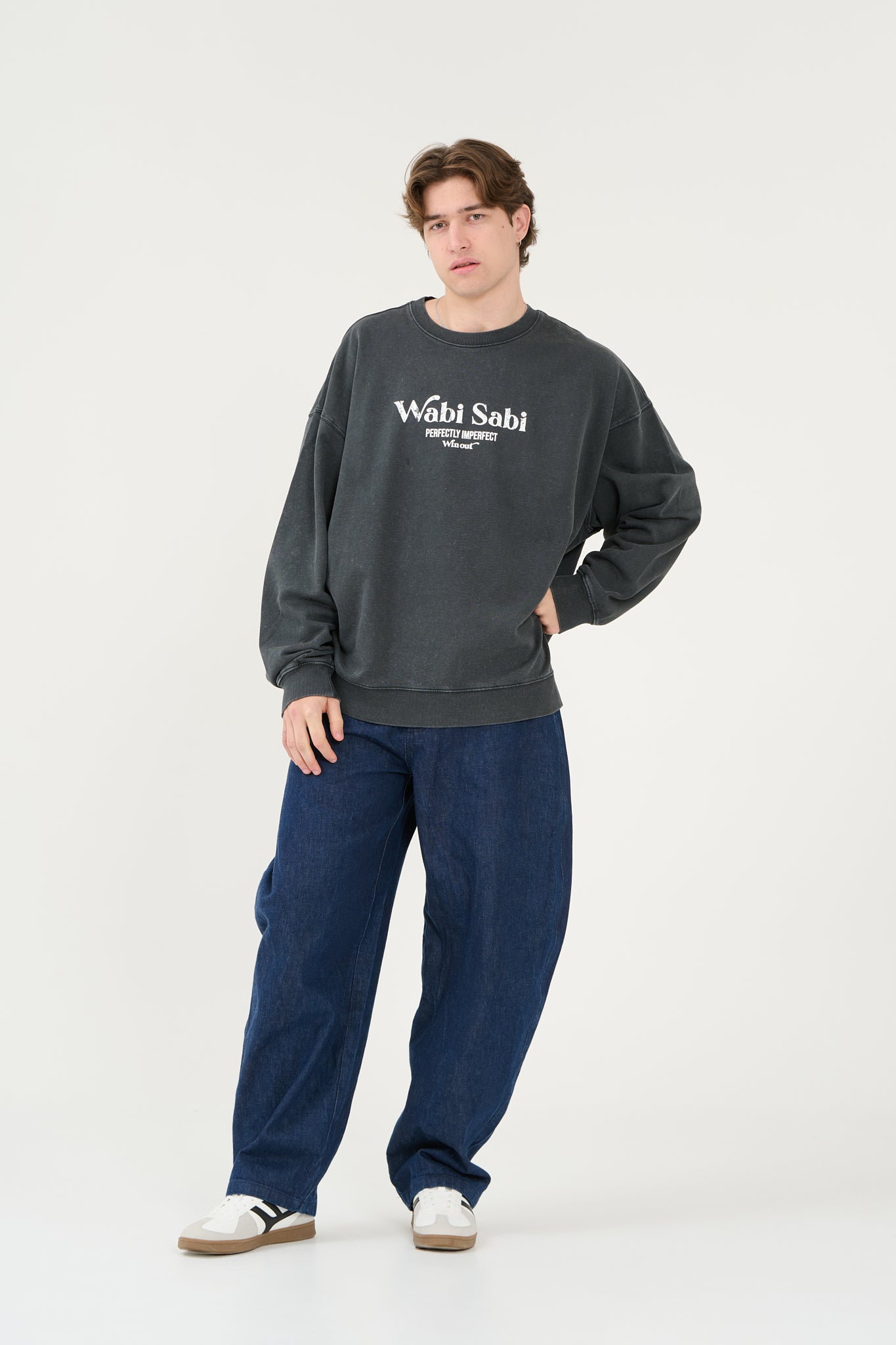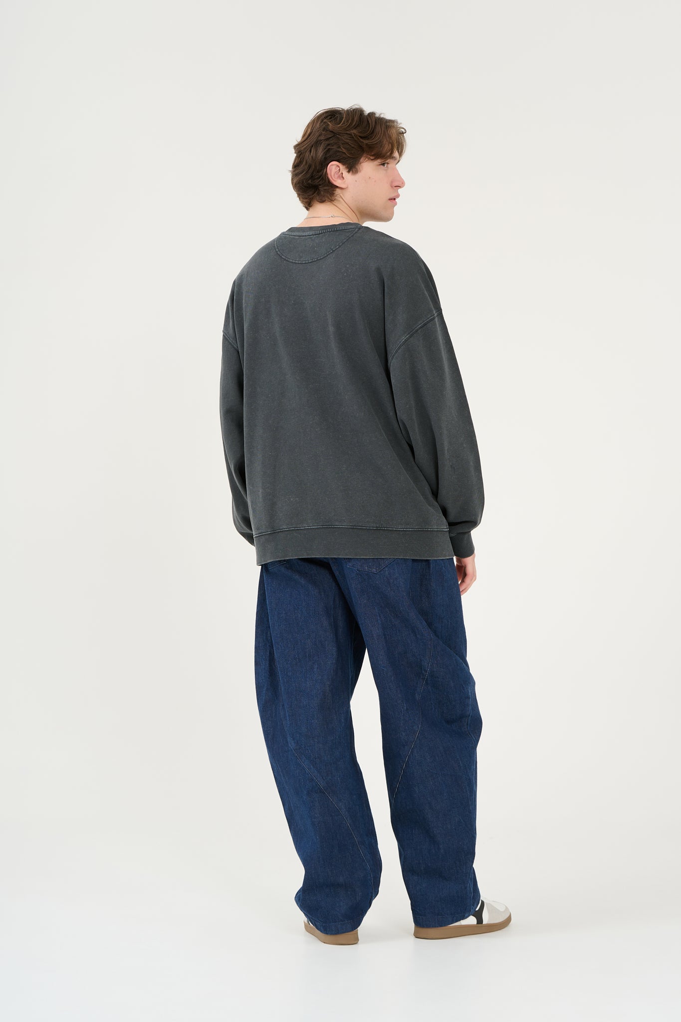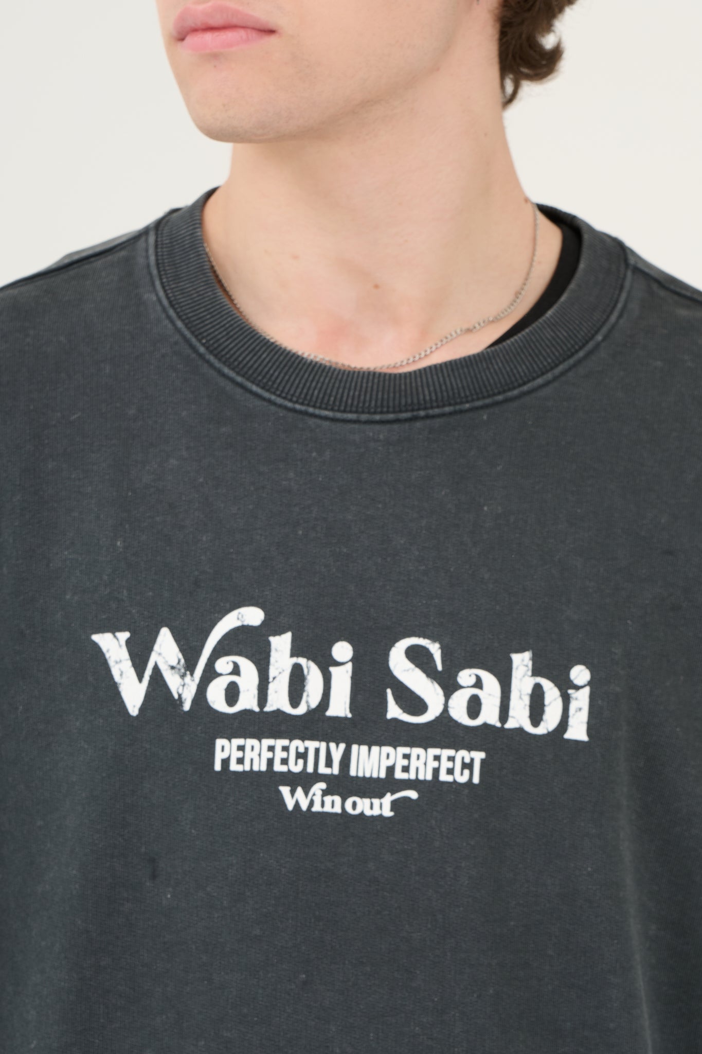 Felpa Unisex lavaggio vintage in colore nero con stampa in serigrafia.
