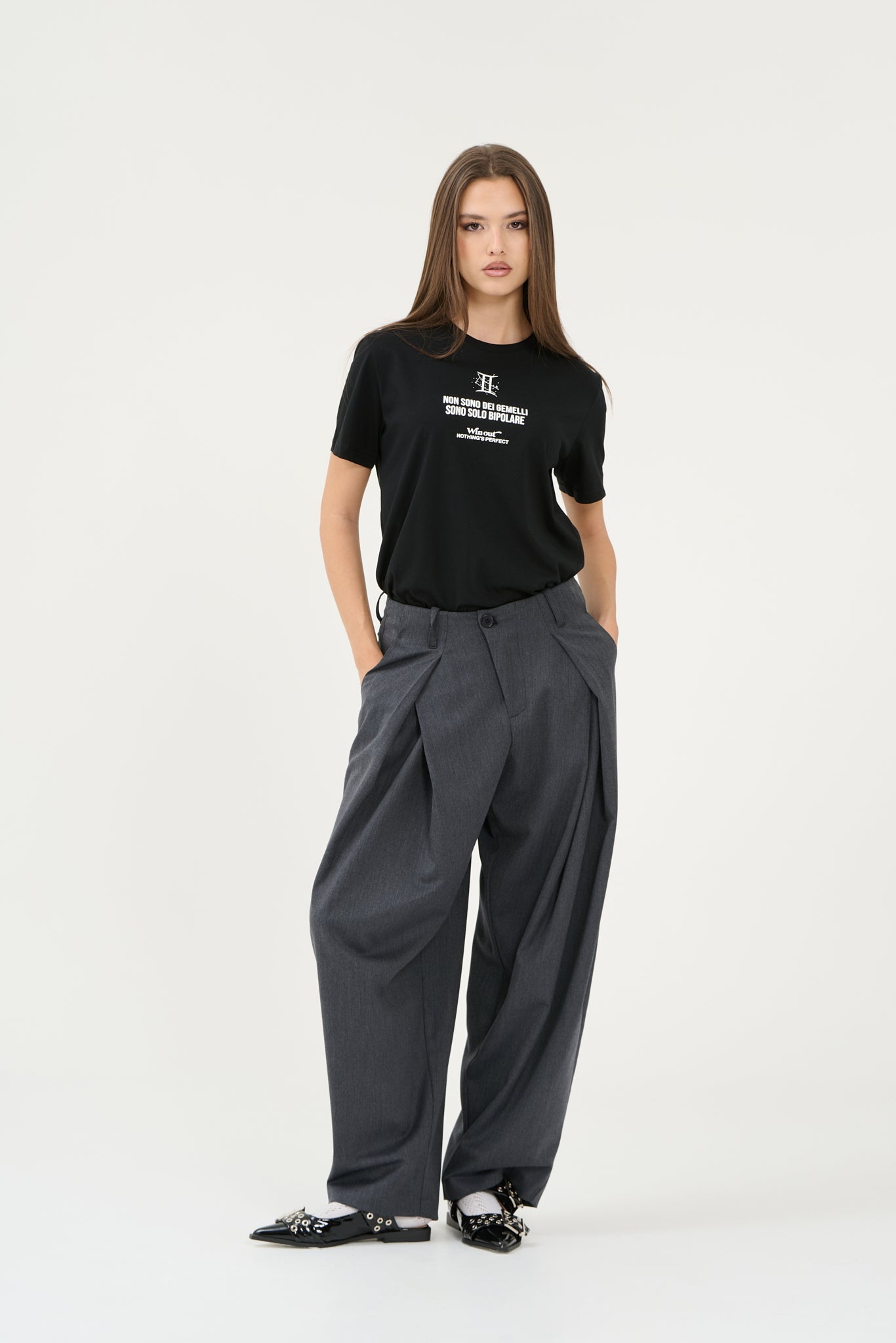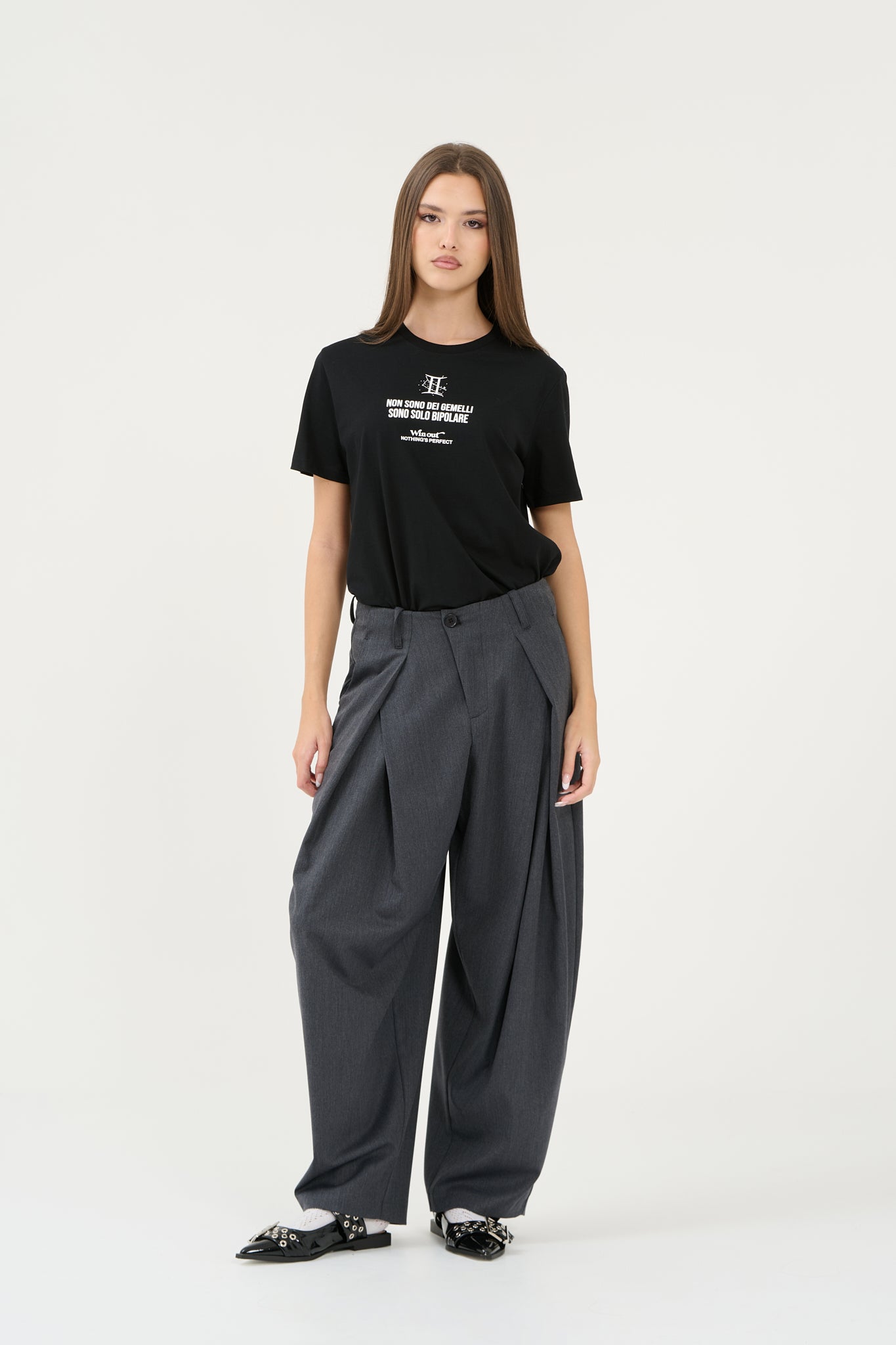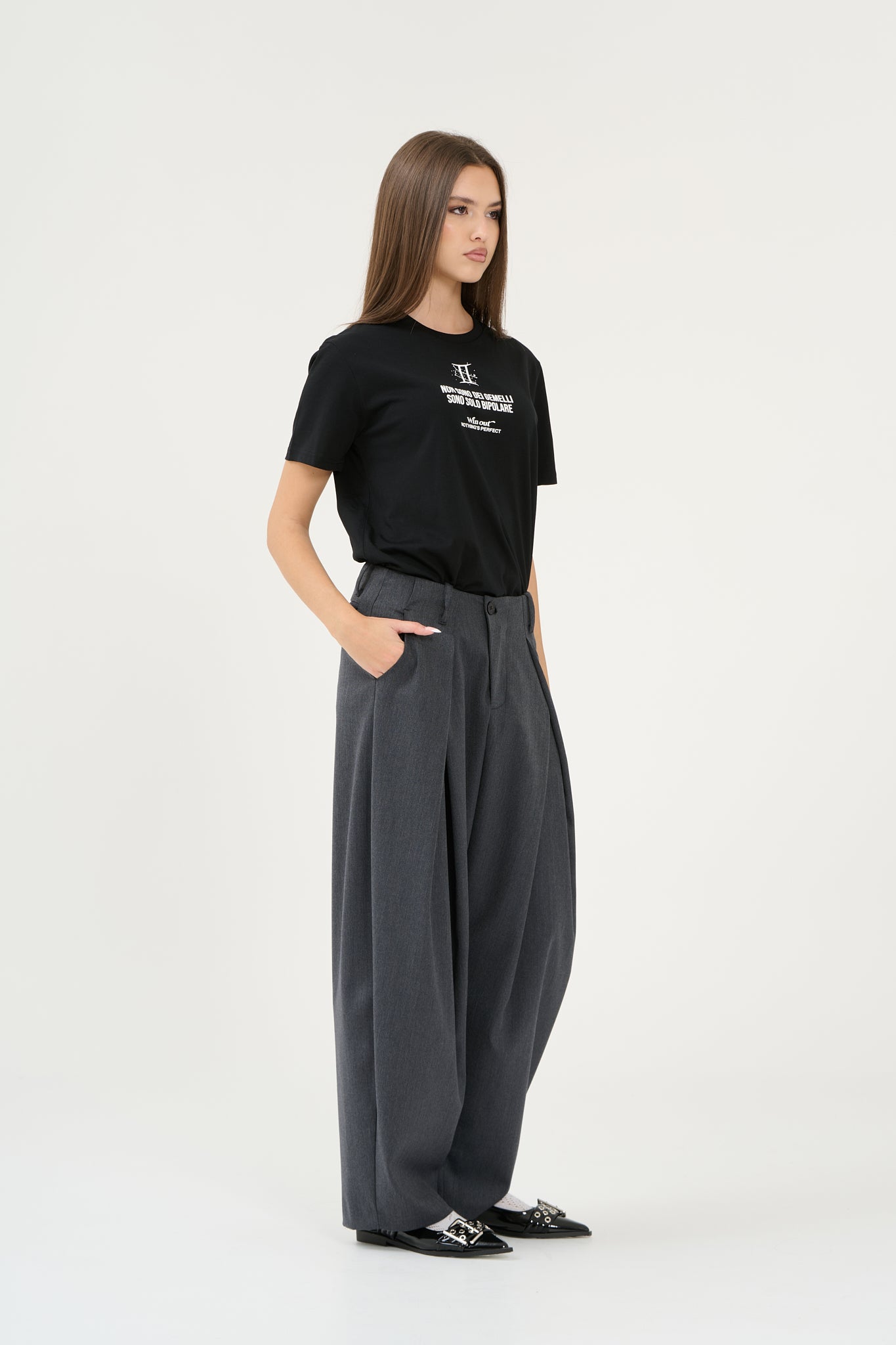Pantalone elegante balloon fit over con pences frontali